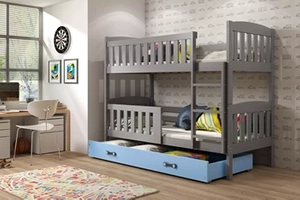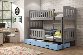 KUBUŚ 90X200 pat supraetajat pentru tineret cu saltea și sertar, grafit/albastru