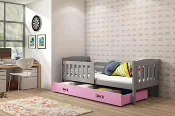 KUBUŚ 80X160 pat simplu pentru copii cu saltea și sertar, grafit/roz