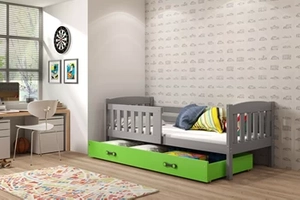 KUBUŚ 80X160 pat simplu pentru copii cu saltea și sertar, grafit/verde