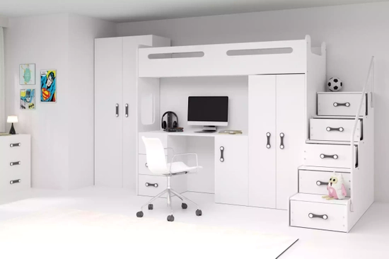 MAX 4 80X200 pat single pentru tineri cu birou, alb