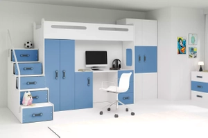 MAX 1 80X200 pat triplu pentru tineri cu birou, albastru