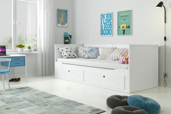 Pat dublu rabatabil pentru tineri HERMES 80X200 cu saltea și sertar, alb