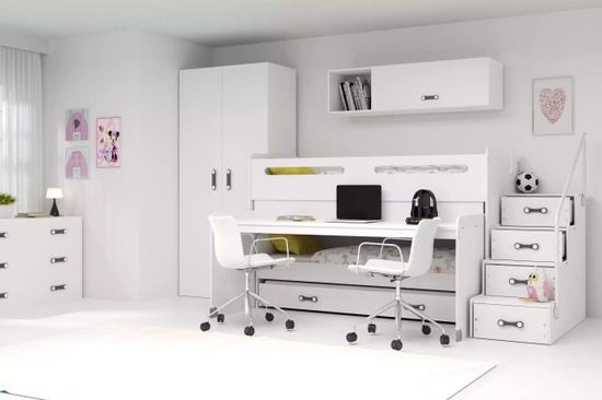 MAX 1 80X200 pat triplu pentru tineri cu saltea și birou, alb