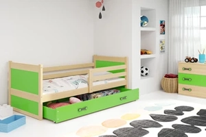 Pat single junior RICO 80X190 cu sertar, pin/verde