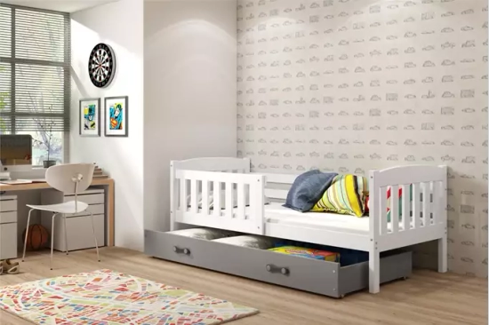 Jacquot 90x190 pat single pentru adolescenți cu saltea și sertar, gri/alb