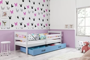 Patul ERYK 90X200 pentru tineri cu sertar, alb/albastru