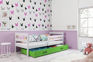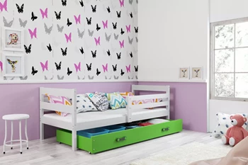 Patul ERYK 90X200 pentru tineri cu sertar, alb/verde