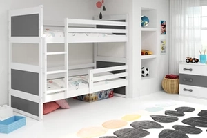 Pat supraetajat pentru tineri RICO 90X200 cu saltea, alb/grafit