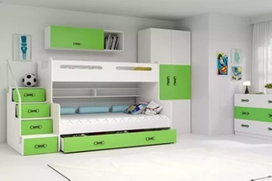 Pat de tineret triplu MAX 3 120X200 cu saltea și sertar, verde