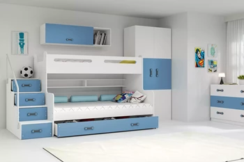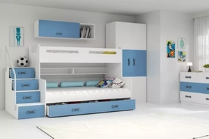 Pat de tineret triplu MAX 3 120X200 cu saltea și sertar, albastru