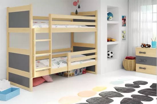 Pat supraetajat Rico 90x190 cu saltea, pin/gri