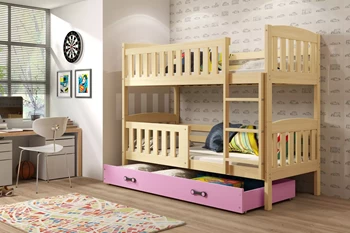 Pat supraetajat junior KUBUŚ 90X200 cu saltea și sertar, pin/roz