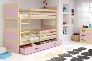 Rico pat supraetajat 90x190 cu sertar, pin / roz