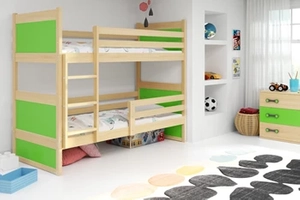 Pat supraetajat junior RICO 90X200 cu saltea, pin/verde