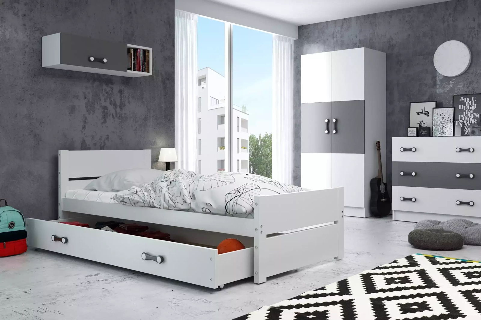 BARTEK 90X200 pat single pentru tineri cu saltea și sertar, alb