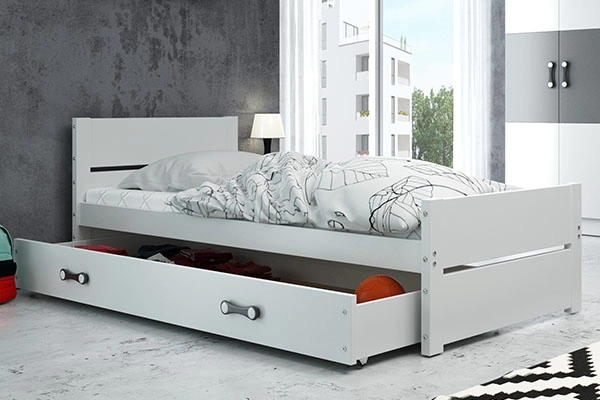 BARTEK 90X200 pat single pentru tineri cu sertar, alb