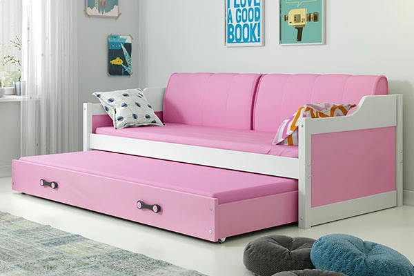 DAWID 90X200 pat de tineret extensibil cu saltea și sertar, alb/roz