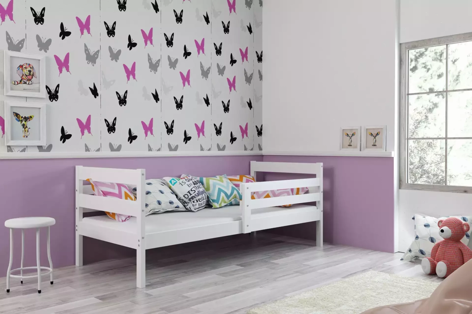 Éric pat single pentru adolescenți 90x190 cu saltea, alb
