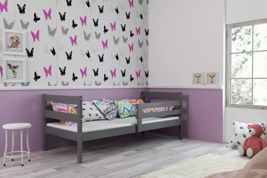Éric pat single pentru adolescenți 90x190 cu saltea, gri