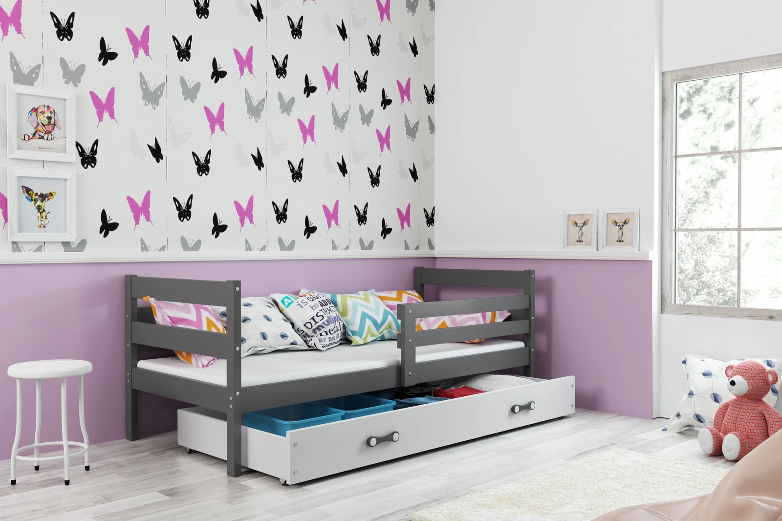 ERYK 80X190 pat single pentru tineri cu saltea și sertar, grafit/alb