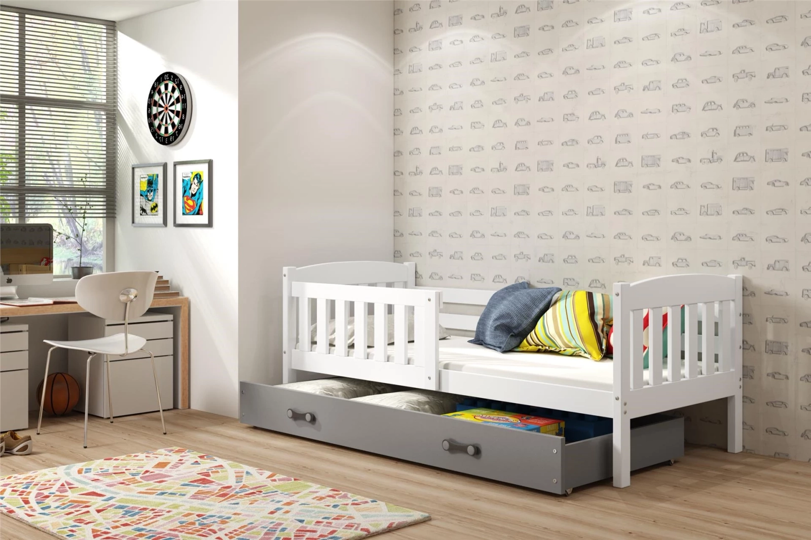 Jacquot 90x190 pat single pentru adolescenți cu sertar, alb/gri