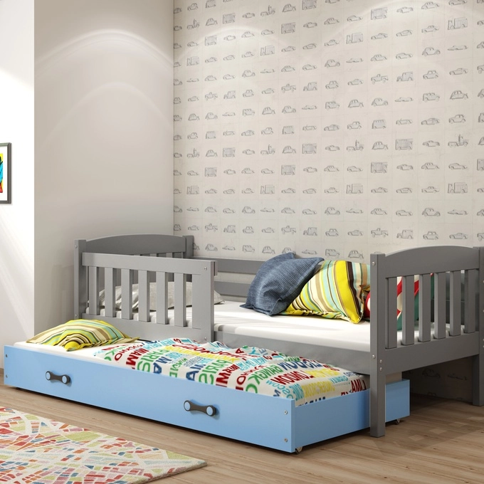 Jacquot 90x190 pat trundle pentru adolescenți cu sertar, gri/albastru