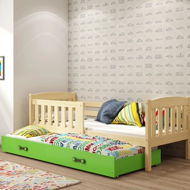 Jacquot pat trundle adolescent 90x190 cu saltea și sertar, pin / verde