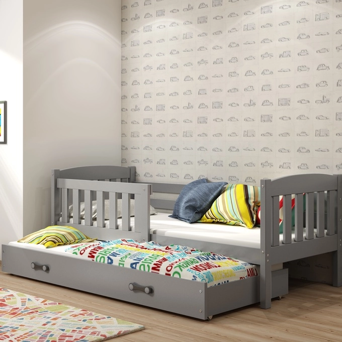 Jacquot teen pat trundle 90x190 cu saltea și sertar, gri