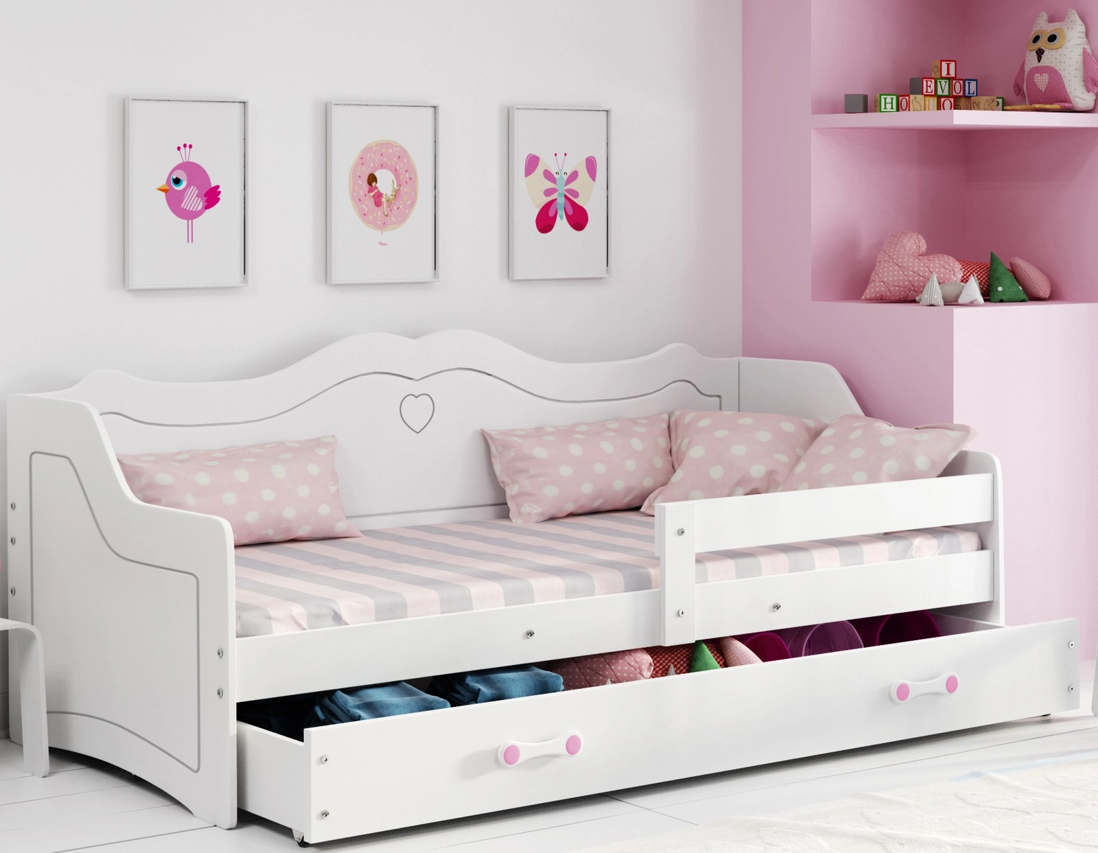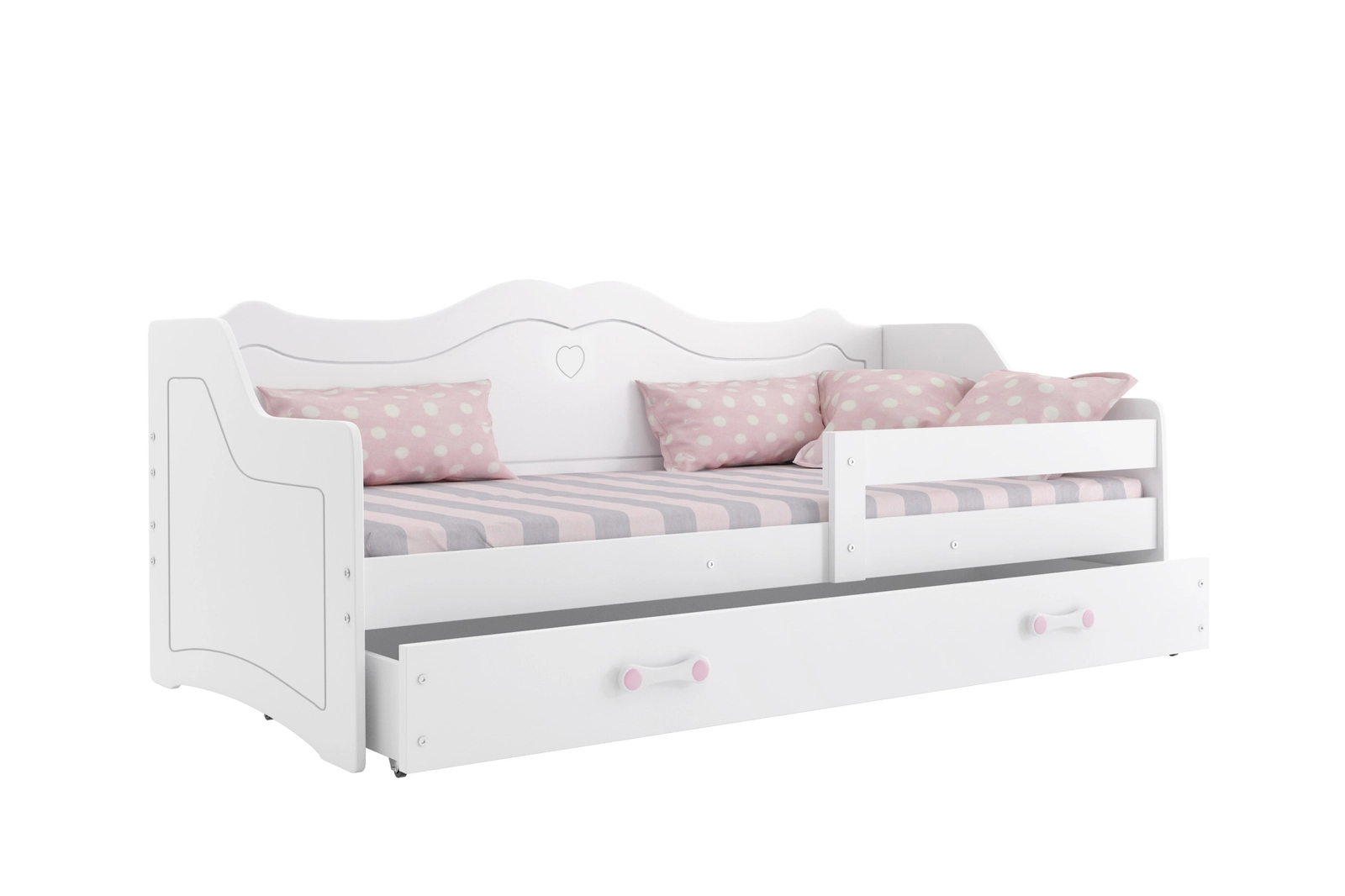 Este o piesă de mobilier care atrage cu siguranță atenția prin designul său, inspirat de stilul Ludovic al XVI-lea. Acesta va fi perfect pentru camera unei fete de la vârsta fragedă până la vârsta școlară timpurie. Patul Julia nu este doar frumos, ci și extrem de funcțional. Poate fi folosit ca o canapea - spătarul, decorat cu detalii cum ar fi caneluri și decupaje în formă de inimă, nu numai că vă va încânta fiica, dar îi va oferi și un loc confortabil pentru a se relaxa și a se juca.