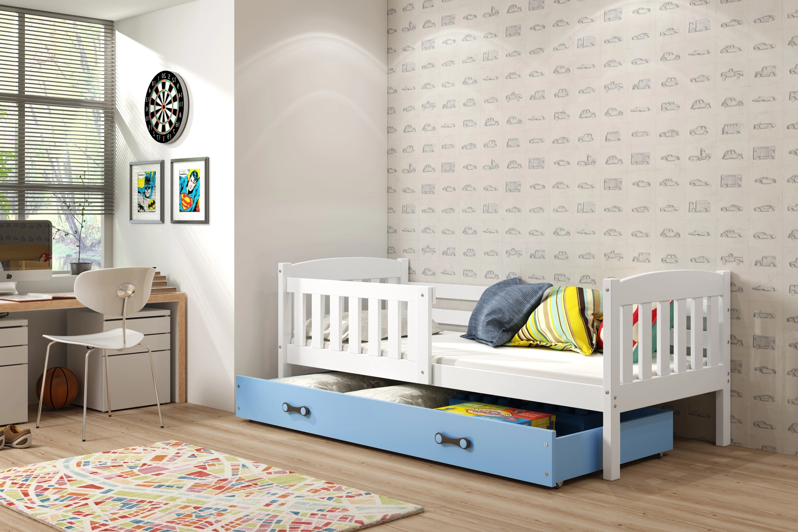 KUBUŚ 80X160 pat single cu sertar, alb/albastru