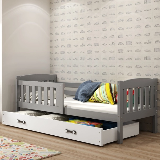 KUBUŚ 80X160 pat single cu sertar, grafit/alb