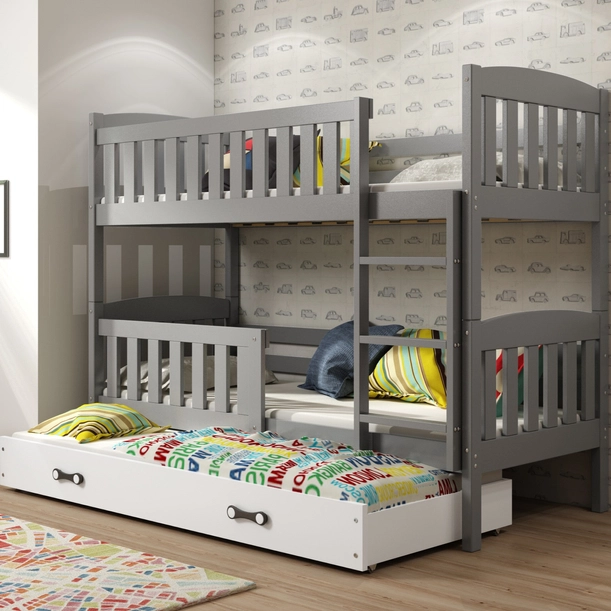 KUBUŚ 90X190 pat triplu pentru tineri cu saltea și sertar, grafit/alb