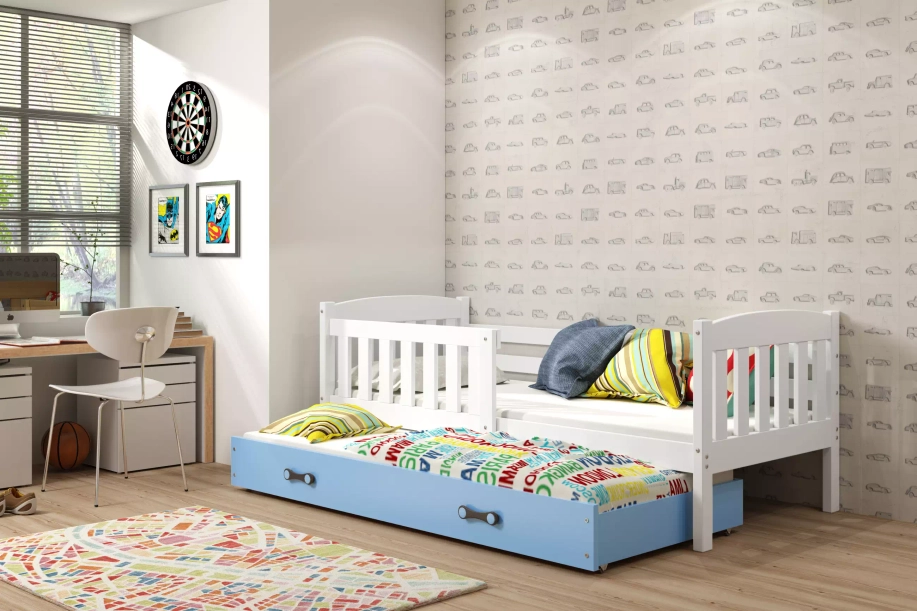 KUBUŚ 90X200 pat de tineret extensibil cu sertar, alb/albastru