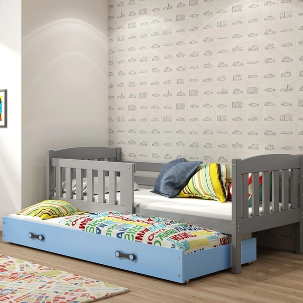 KUBUŚ 90X200 pat de tineret extensibil cu sertar, grafit/albastru