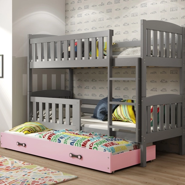 KUBUŚ 90X200 pat de tineret pentru trei persoane cu sertar, grafit/roz