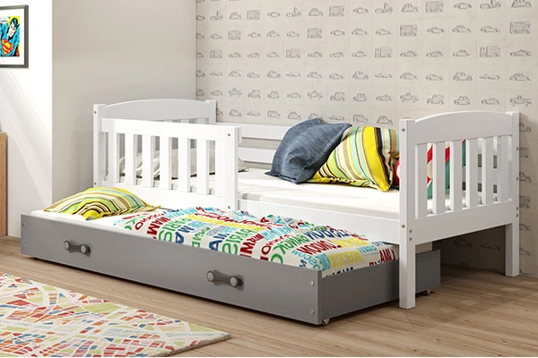 KUBUŚ 90X200 pat extensibil pentru tineri cu saltea și sertar, alb/grafit