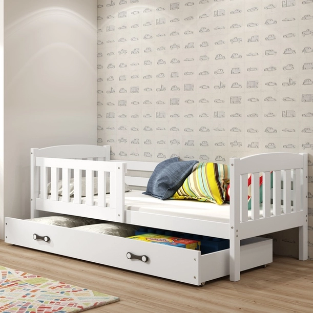 KUBUŚ 90X200 pat single pentru tineri cu sertar, alb