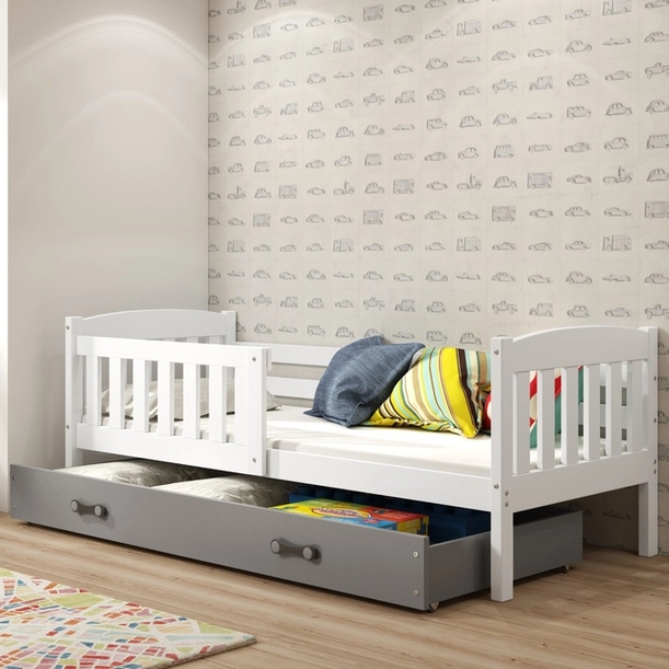 KUBUŚ 90X200 pat single pentru tineri cu sertar, alb/grafit