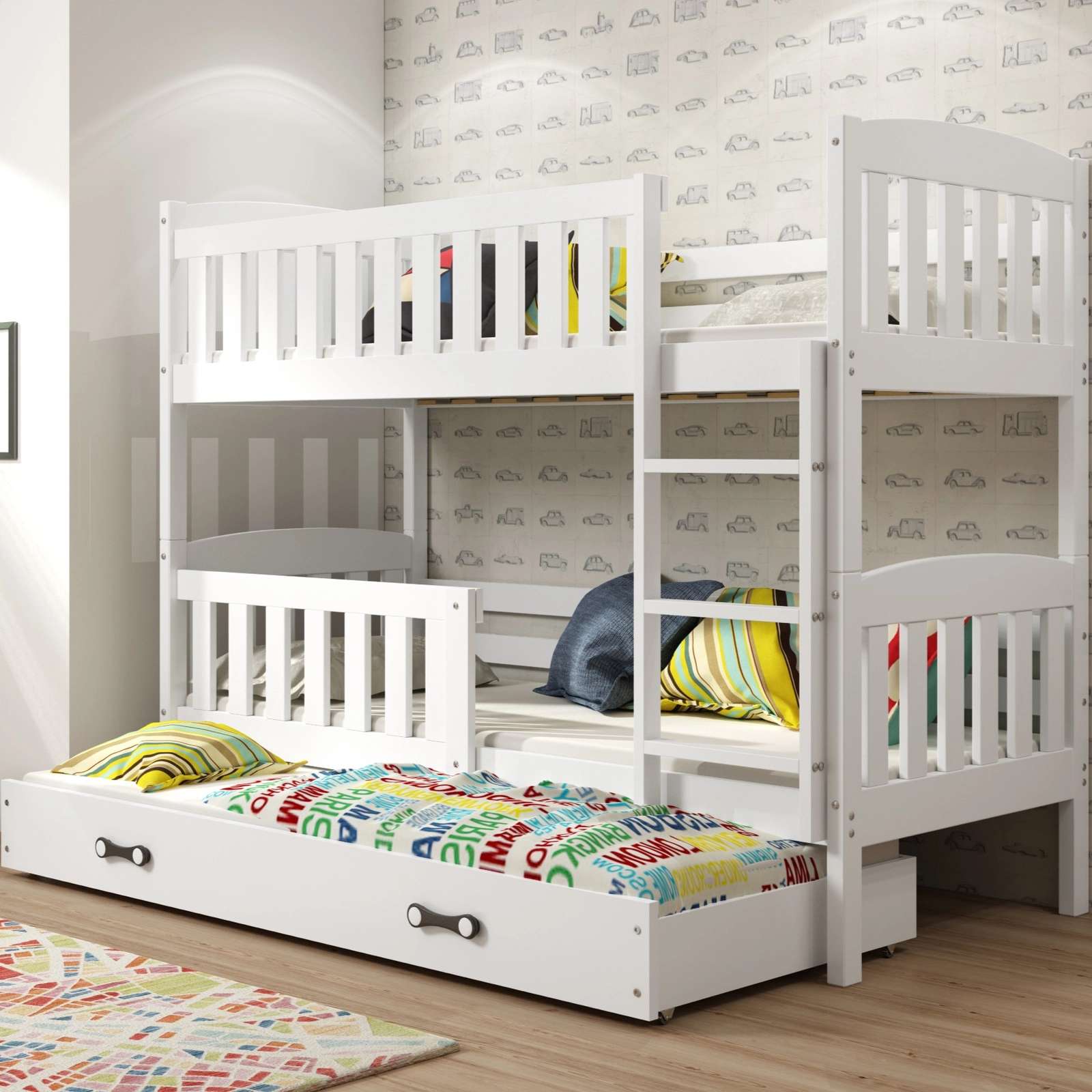 KUBUŚ 90X200 pat triplu pentru tineri cu saltea și sertar, alb
