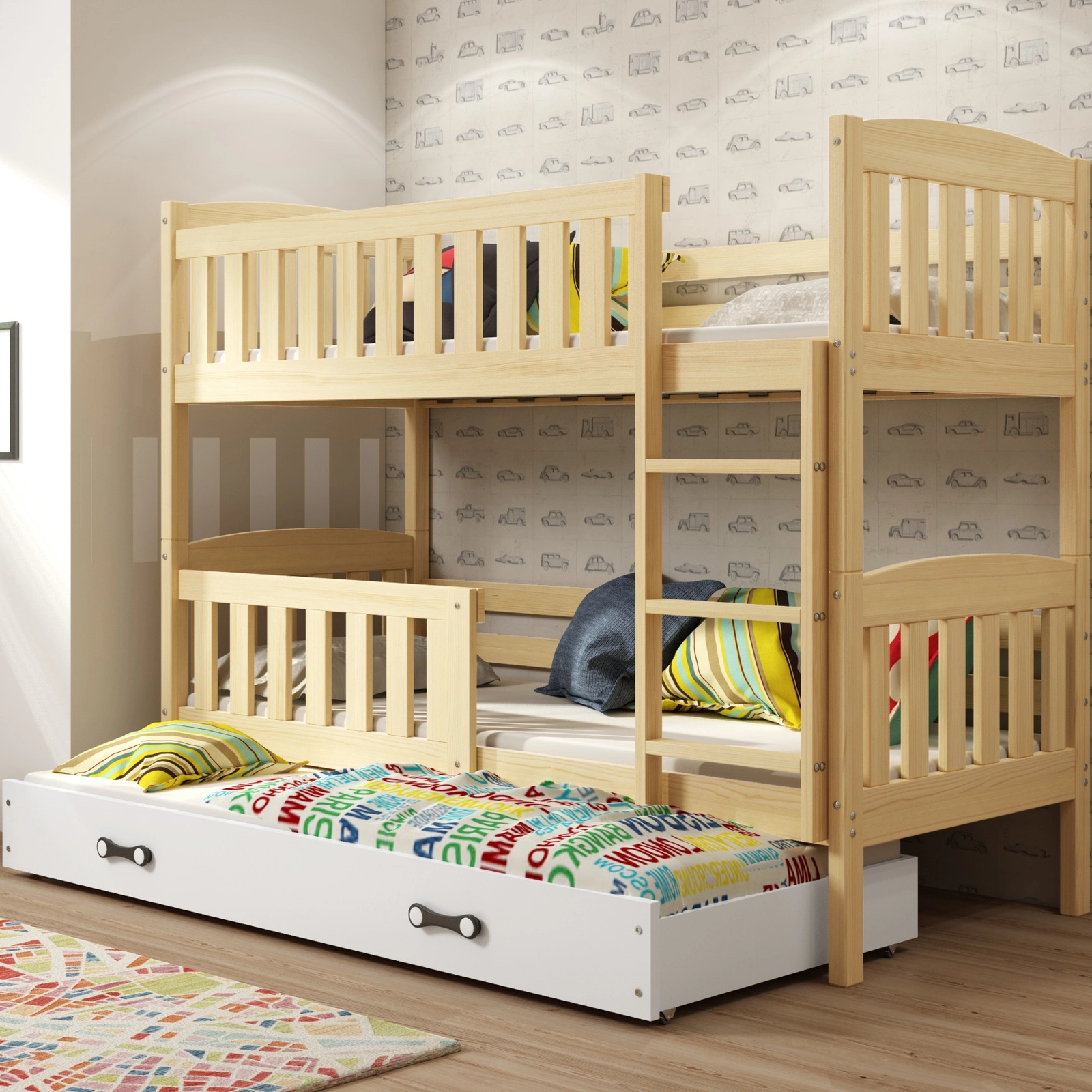 KUBUŚ 90X200 pat triplu pentru tineri cu saltea și sertar, pin/alb
