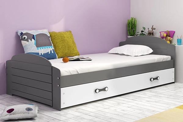LILI 90X200 pat single pentru tineri cu sertar, grafit/alb