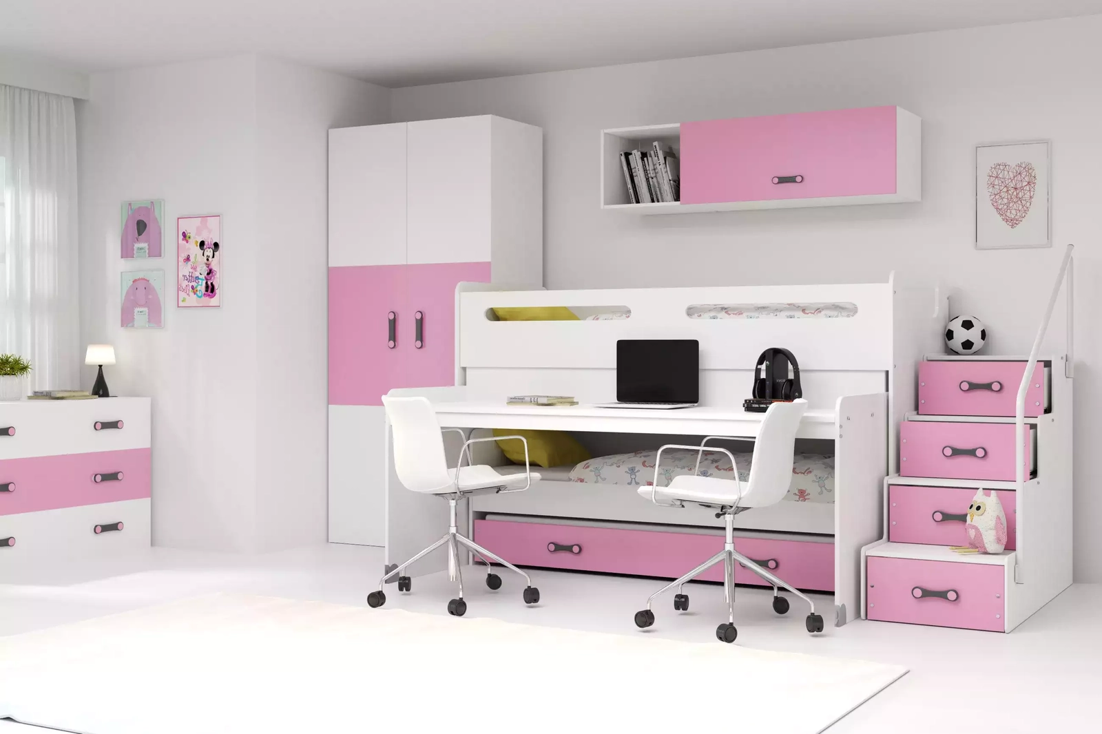 MAX 1 80X200 pat triplu pentru tineri cu saltea și birou, roz
