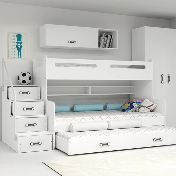 Pat adolescent triplu MAX 3 120X200 cu sertar, alb