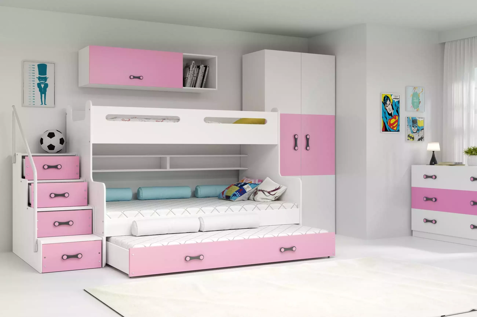 Pat adolescent triplu MAX 3 120X200 cu sertar, roz