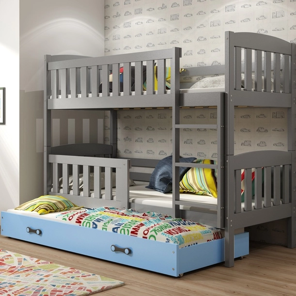 Pat cu trei paturi KUBUŚ 90X190 cu sertar, grafit/albastru