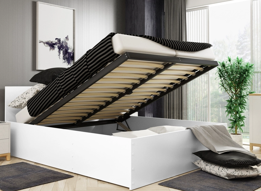 Pat de dormitor PANAMAX 140X200 cu depozitare, alb