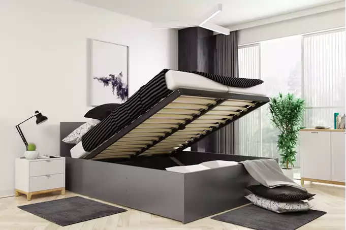 Pat de dormitor PANAMAX 160X200 cu saltea și cutie, grafit