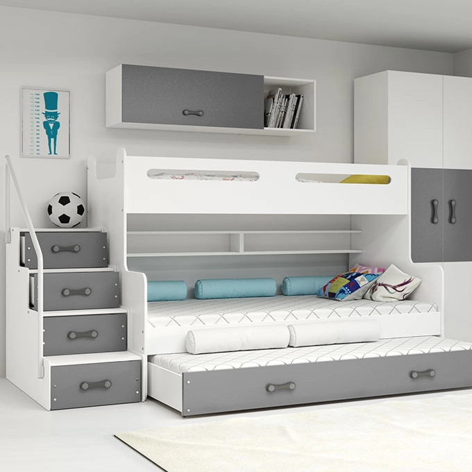 Pat de tineret triplu MAX 3 120X200 cu saltea și sertar, grafit
