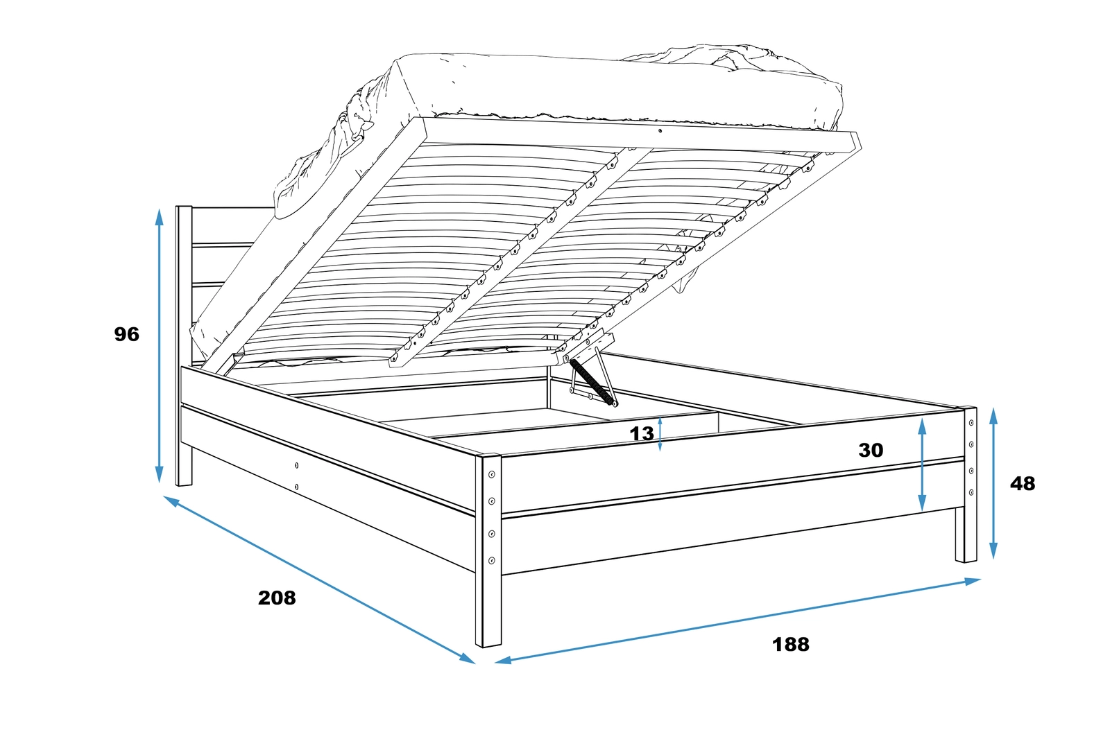 Construcția robustă a acestui pat cu cadru de ridicare asigură confort și durabilitate pentru anii următori. Cadrul metalic este prevăzut cu lamele de mesteacăn pentru o experiență de dormit mai confortabilă. Confortul de dormit este, de asemenea, susținut de o zonă de dormit mare de 180x200 cm, care este ideală atât pentru cupluri, cât și pentru persoanele care apreciază spațiul pe timp de noapte.