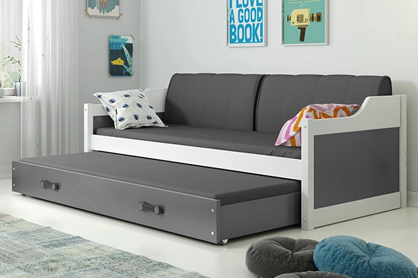 Cumpărarea unui pat care să se potrivească perfect în spațiul unui dormitor pentru tineri, în timp ce încă mai poate găzdui două persoane, poate fi dificilă. Cu toate acestea, acest lucru nu înseamnă că trebuie să cumpărați un model supraetajat! Confirmarea acestor cuvinte este patul David cu designul său clasic, în sertarul căruia a fost plasat un loc de dormit suplimentar.